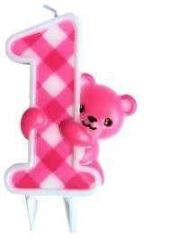 ŚWIECZKA URODZINOWA 1 MIŚ RÓŻOWY
