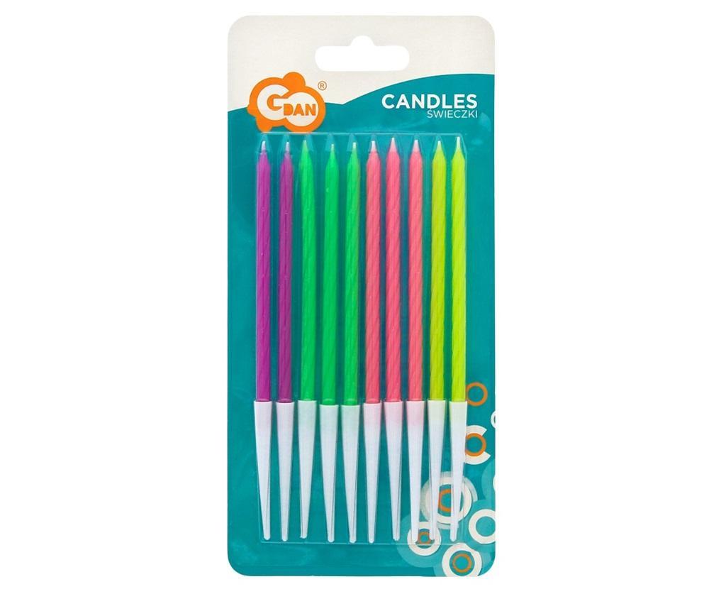 ŚWIECZKI NEONOWY MIX, 10 SZT. Wysokość: 13,5 cm Średnica: 0,4 cm Ilość: 10 szt. Producent: Godan S.A.