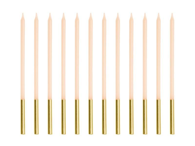 Świeczki urodzinowe gładkie w kolorze beżowym, wysokość ok. 14 cm. Zestaw zawiera 12 świeczek.(1 op. / 12 szt.)
