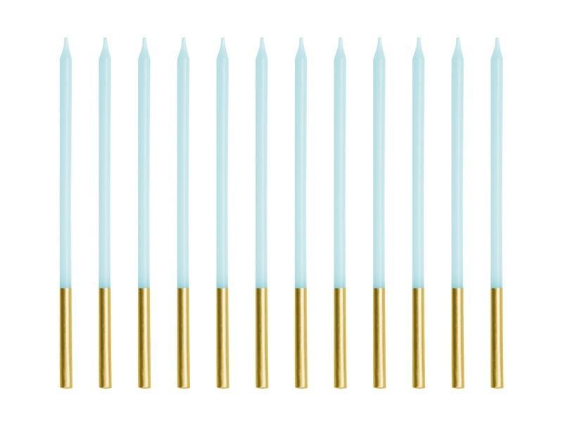 Świeczki urodzinowe gładkie w kolorze jasnobłękitnym, wysokość ok. 14 cm. Zestaw zawiera 12 świeczek.(1 op. / 12 szt.)