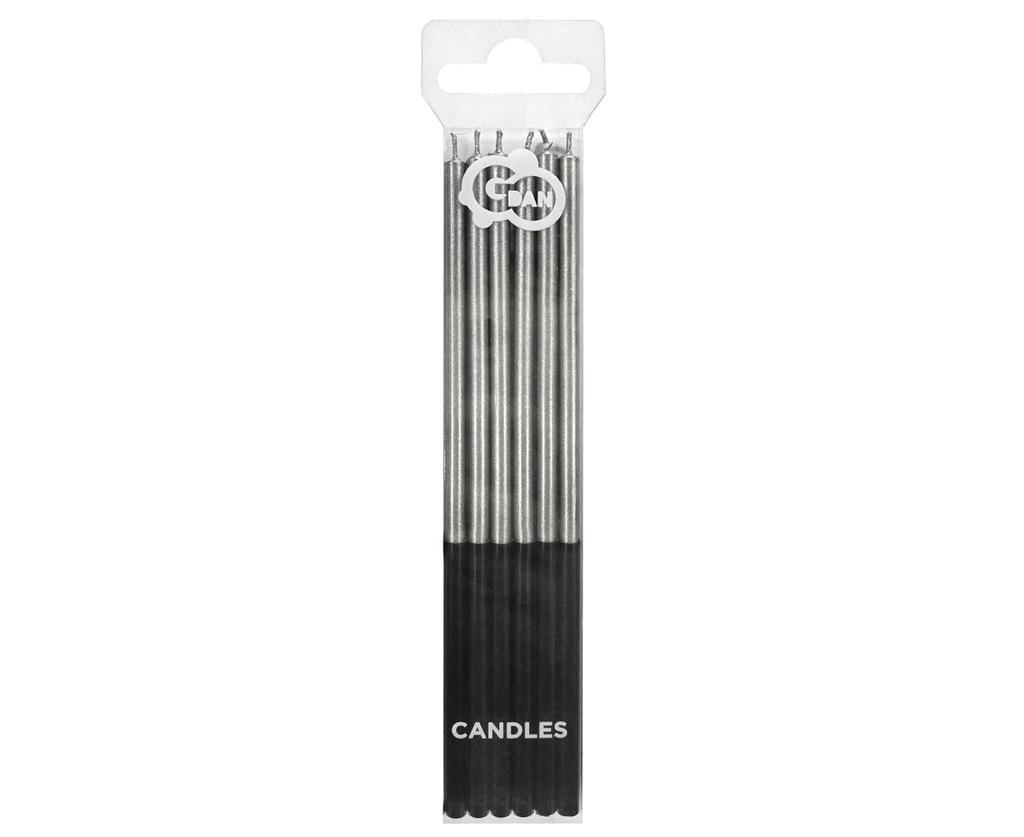 Świeczki urodzinowe Platinum, srebrne, wys. 14.5 cm, 6 szt.