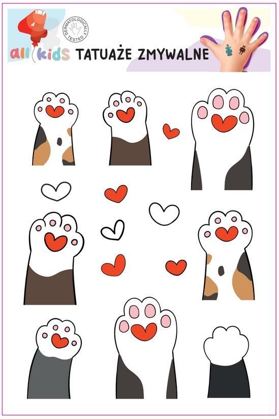 TATUAŻE ZMYWALNE DLA DZIECI KOCIE ŁAPKI, ALL4KIDS