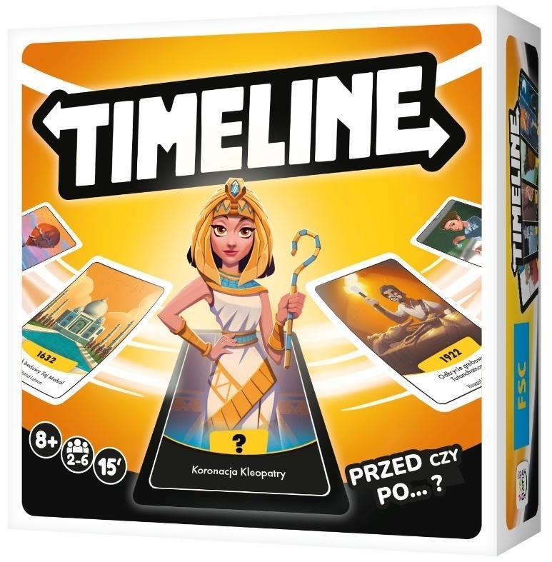 Jak sądzisz, co zostało wynalezione najwcześniej: szczoteczka do zębów, zegarek, a może teleskop? Który z cudów świata starożytnego zaczął być budowany najpóźniej? Czy ołówek we współczesnej formie jest z nami dłużej niż zapałki? Na te i inne pytania odpowie Timeline niezwykle przyjemna karcianka dla całej rodziny, w której wspólnie tworzymy oś czasu z wylosowanych kart wydarzeń. W pudełku znajdziesz 96 kart z historii ogólnej, od prehistorii aż po współczesność.