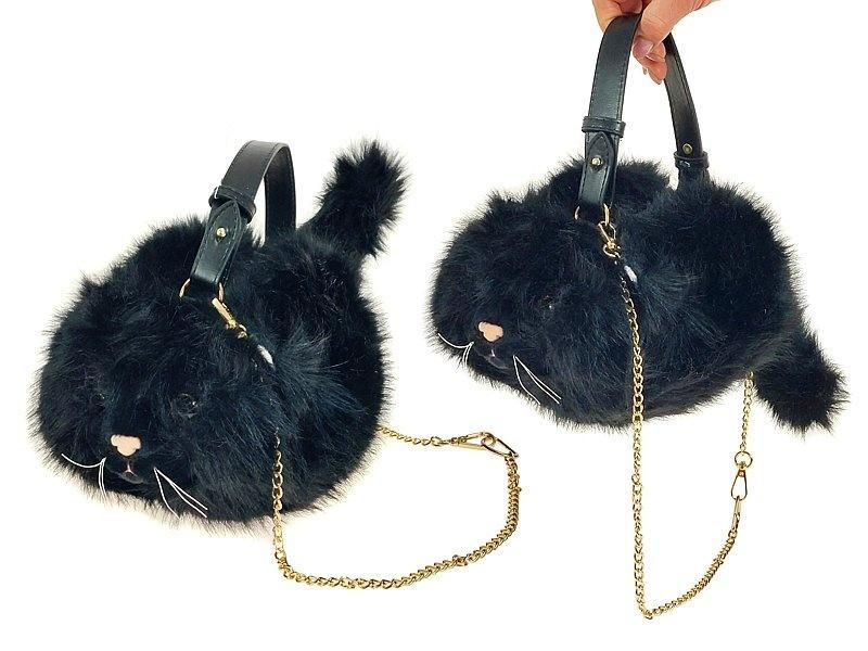 TOREBKA PLUSZOWA KOT 28X20CM ZE ZŁOTYM ŁAŃCUCHEM