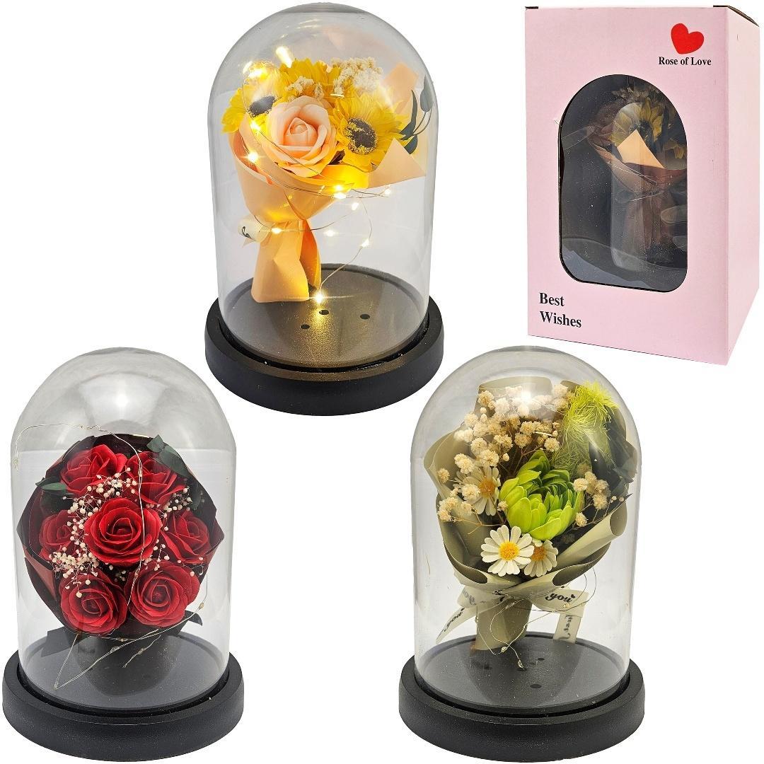 Wieczna Róża w Szklanej Kopule z Oświetleniem LED - Wyjątkowy Prezent
