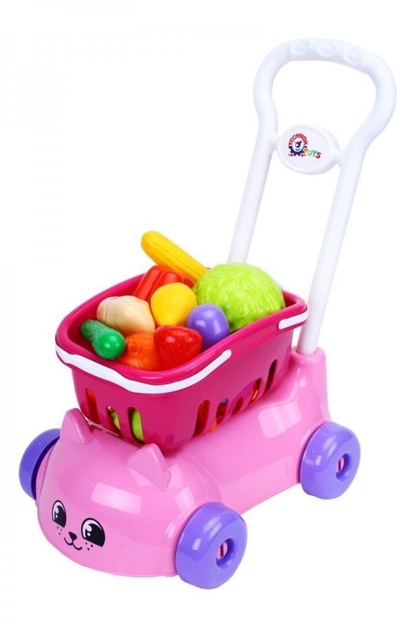 Kosz pełen kolorowych owoców i warzyw jest bezpiecznie przymocowany do wózka . Wszystkie wykonane są z wysokiej jakości materiałów, są bezpieczne, trwałe i sprawią wiele radości Twojemu dziecku. W zestawie : wózek z rączką, koszyk, 8 warzyw i 8 owoców.