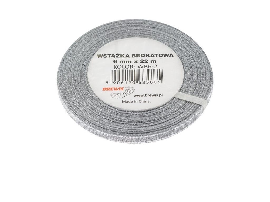 WSTĄŻKA BROKATOWA SREBRNA 6MMX22M
