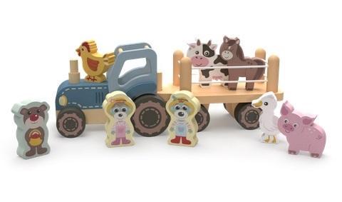 - Drewniany traktor z przyczepką na licencji Babies and the Bear.
