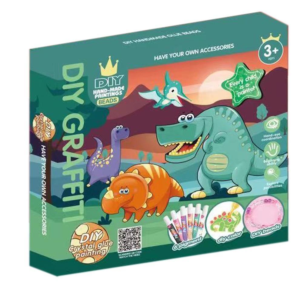 Zestaw kreatywny - DINOZAURY Możliwość stworzenia kolorowych dinozaurów, które potem mogą być ozdobą plecaka, piórnika czy biżuterią. W zestawie 6 kolorów żelów, formy, koraliki Wymiary opakowania: 24.5 x 3.5 x 23 cm